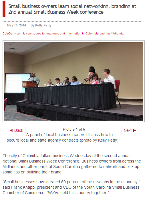 (Source: Small business owners learn social networking, branding at 2nd annual Small Business Week conference, Cola Daily, May 15, 2014)