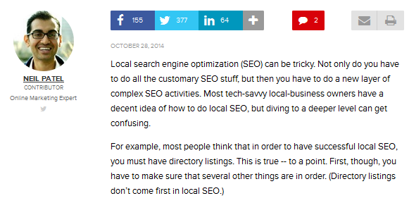 For instance, take local Greenville, SC marketing campaigns, especially local SEO (search engine optimization), wherein a number of business owners fail to see the bigger picture and rarely go beyond posting in local directory listings. As Neil Patel states in his article posted at Entrepreneur.com: