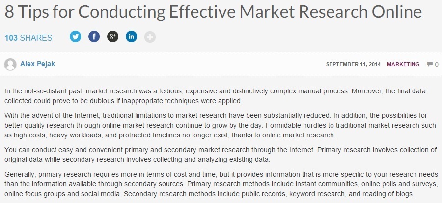 (Source: 8 Tips for Conducting Effective Market Research Online, B2C, September 11, 2014)